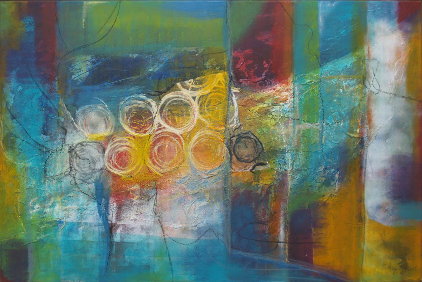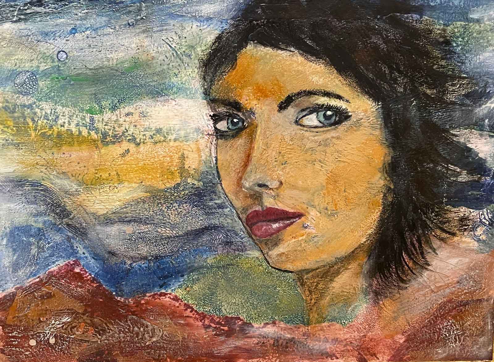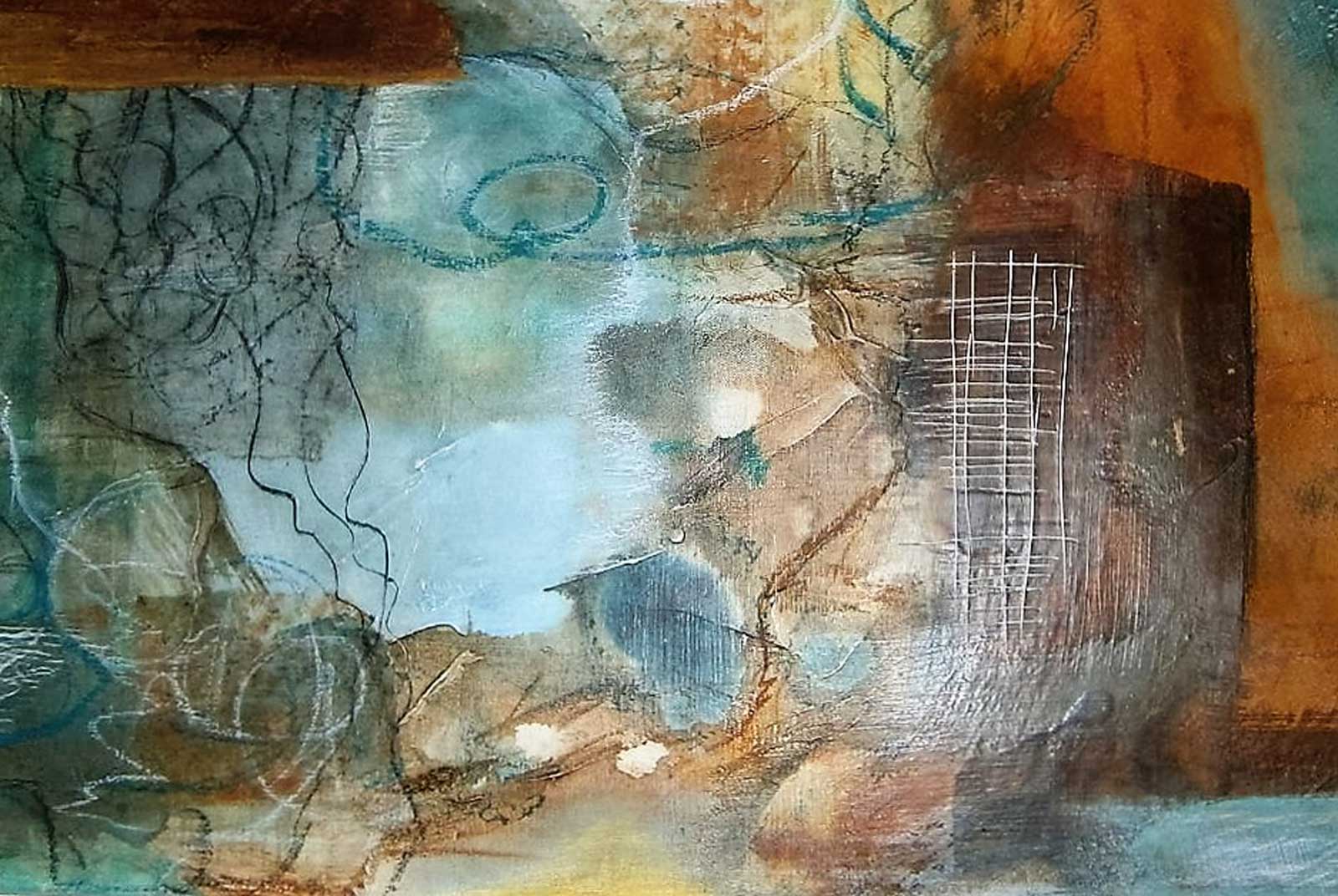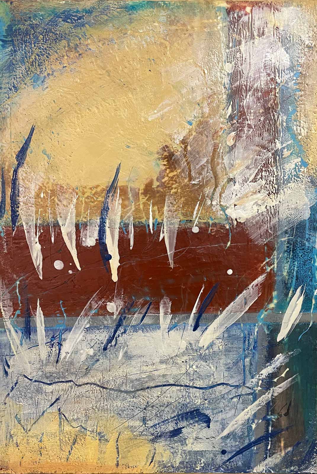 Das Zusammenspiel der Farbverläufe in den verschiedenen Wachsschichten, dazu Ölstifte, Pigmente und andere Materialien, bieten mir die Basis für den Ausdruck meiner Bilder.